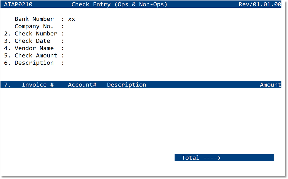 Used to enter checks that are not tied to an operational file such as rent, utilities, insurance, or administrative expenses.