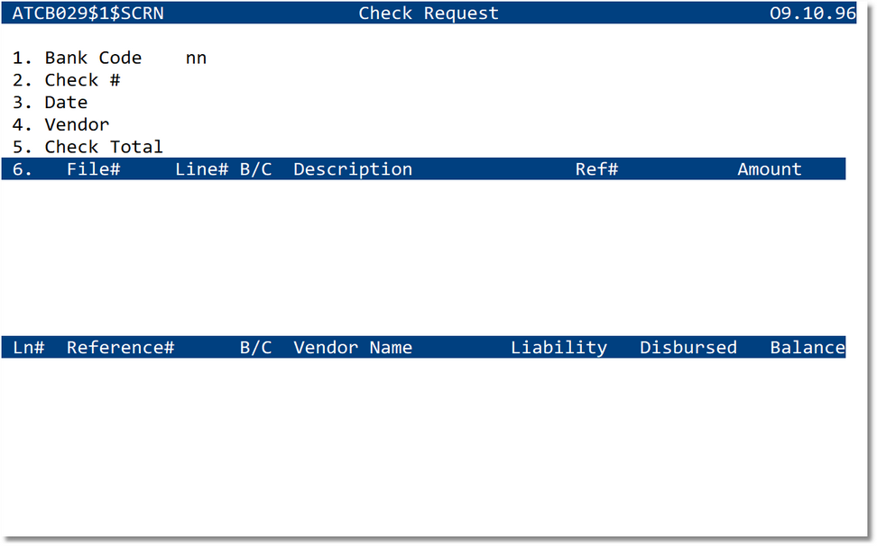 Used when a check must be entered manually but is tied to operational files (e.g., carrier payments, agent charges).