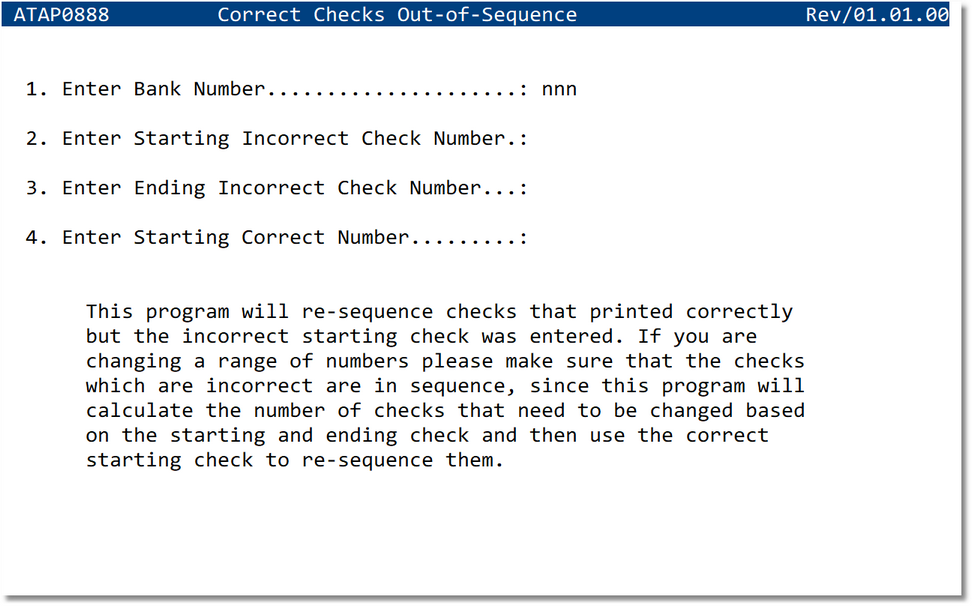 Corrects check number sequencing when checks printed correctly but the wrong starting number was entered.
